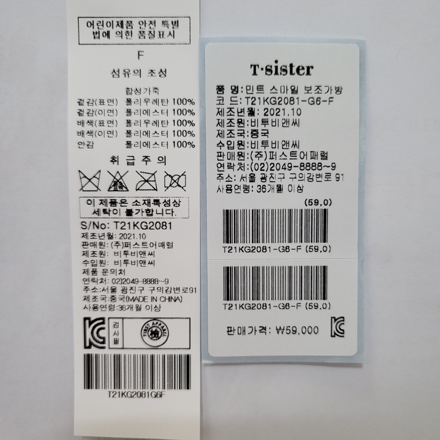 (합성가죽)겉감: 표면 폴리우레탄 100 이면 폴리에스터 100배색 표면 폴리우레탄 100 이면 폴리에스터 100안감: 폴리에스터 100 -