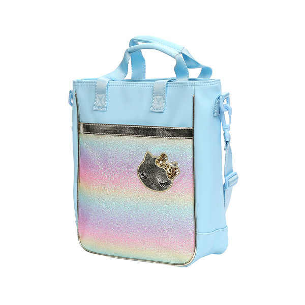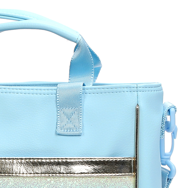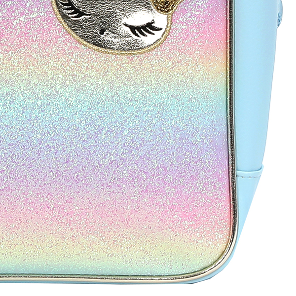 전면이 파스텔톤의 블루 핑크 노랑을 믹스한 그라데이션 펄 소재입니다.