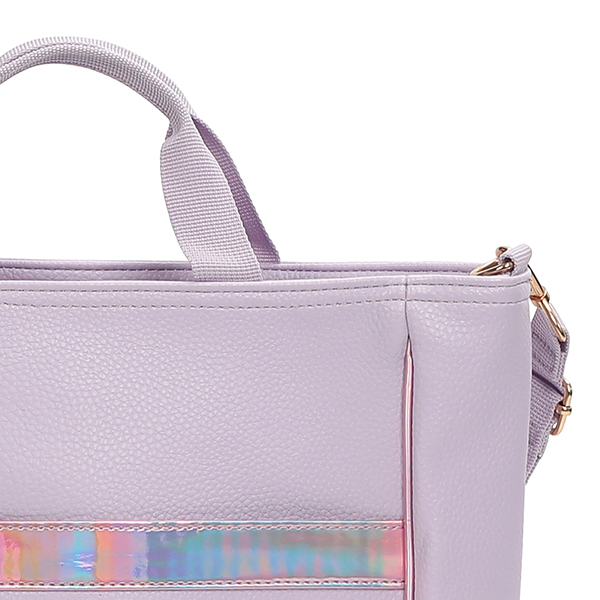 연보라 칼라의 엠보 소재와 블루 핑크 노랑 보라 칼라가 섞인 펄소재를 믹스하여 사용하였습니다.