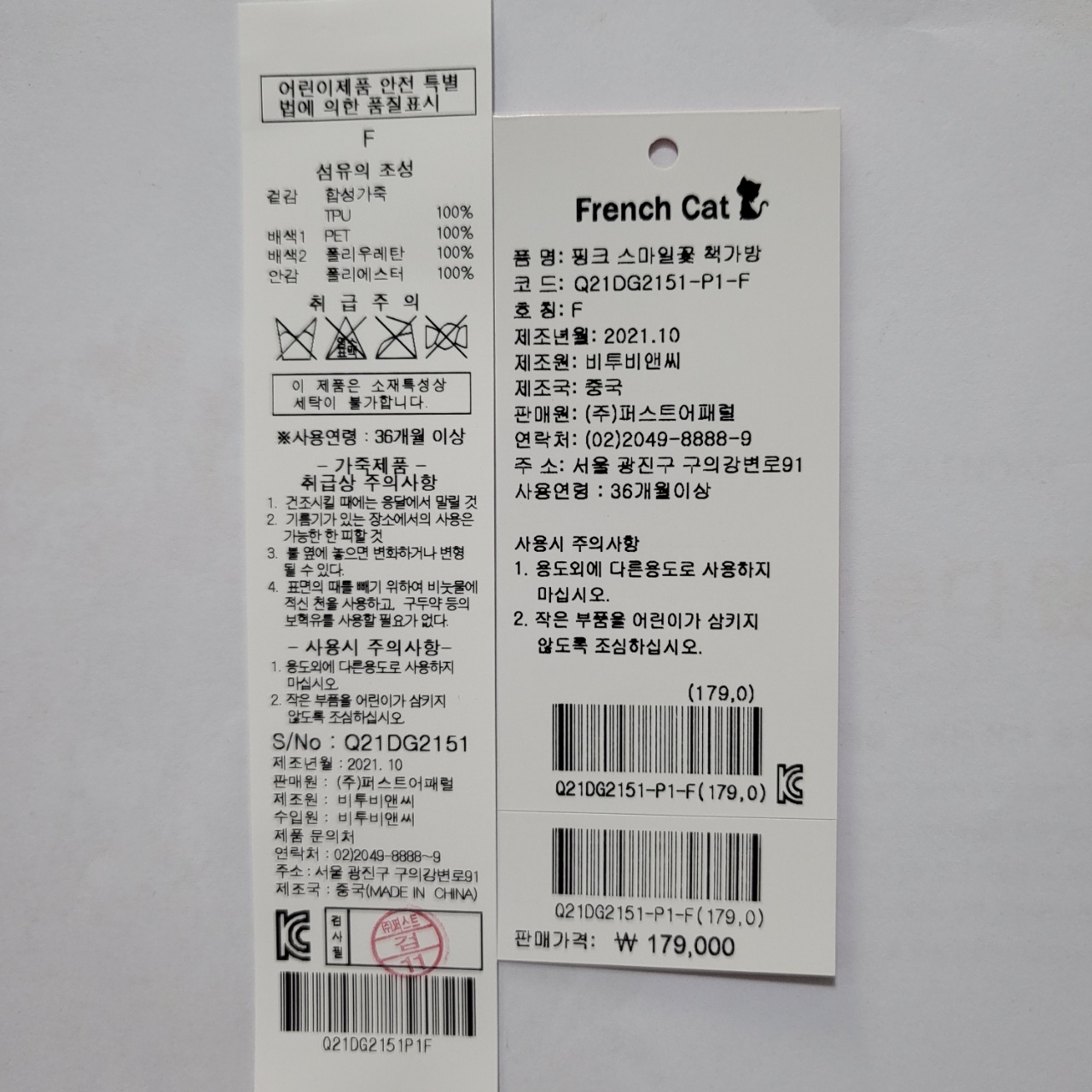 프랜치 로고와 스마일 꽃 자수가 포인트로 있습니다.