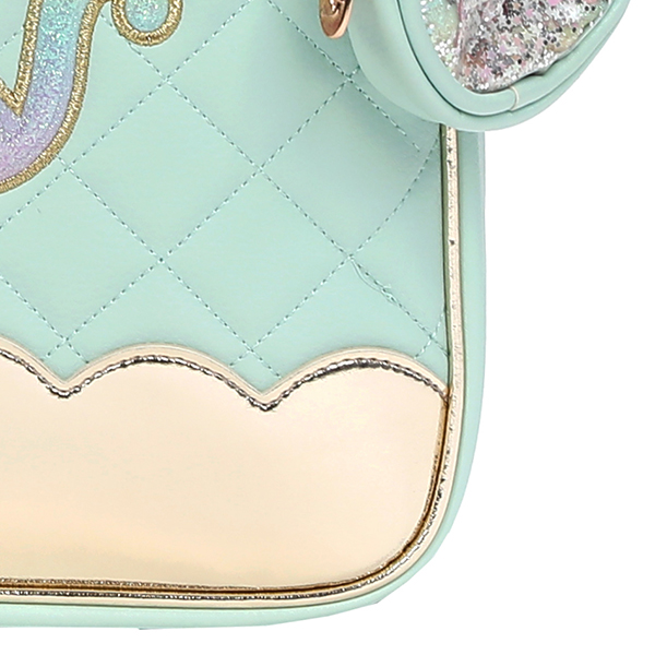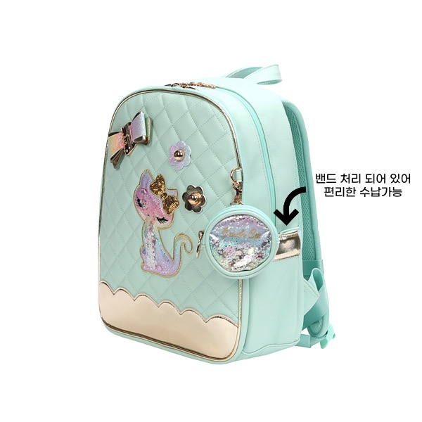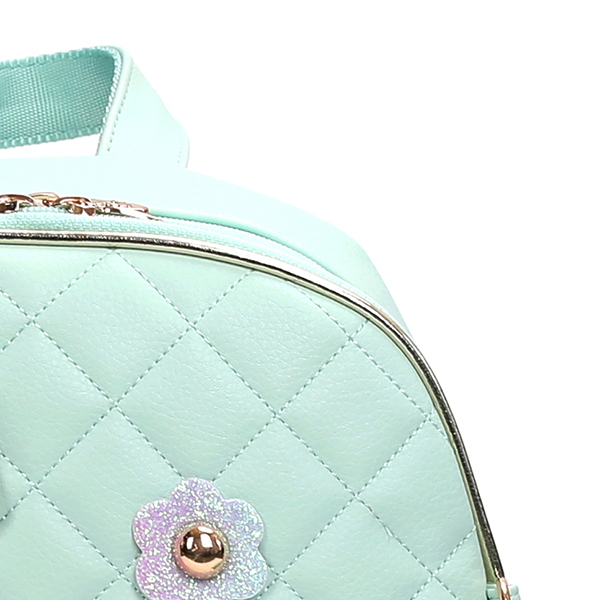 전면에 파스텔톤의 민트 엠보 소재를 퀼팅하여 사용하였습니다.