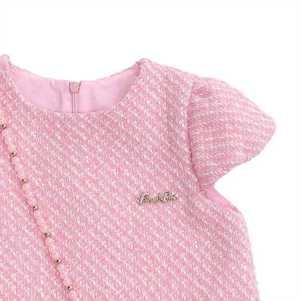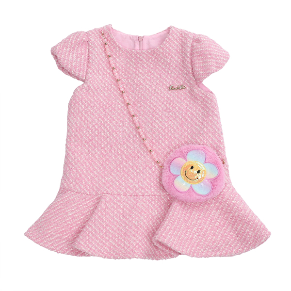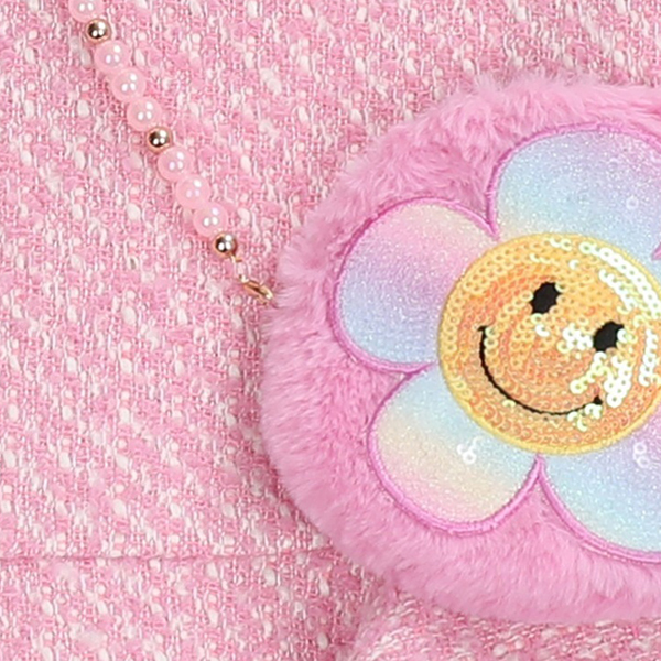 캡소매 디자인으로 매칭 보아털을 이용해 탈부착가방과 스팽글플라워포인트로 포인트를 주어 더욱더 러블리함을 살려주었습니다.