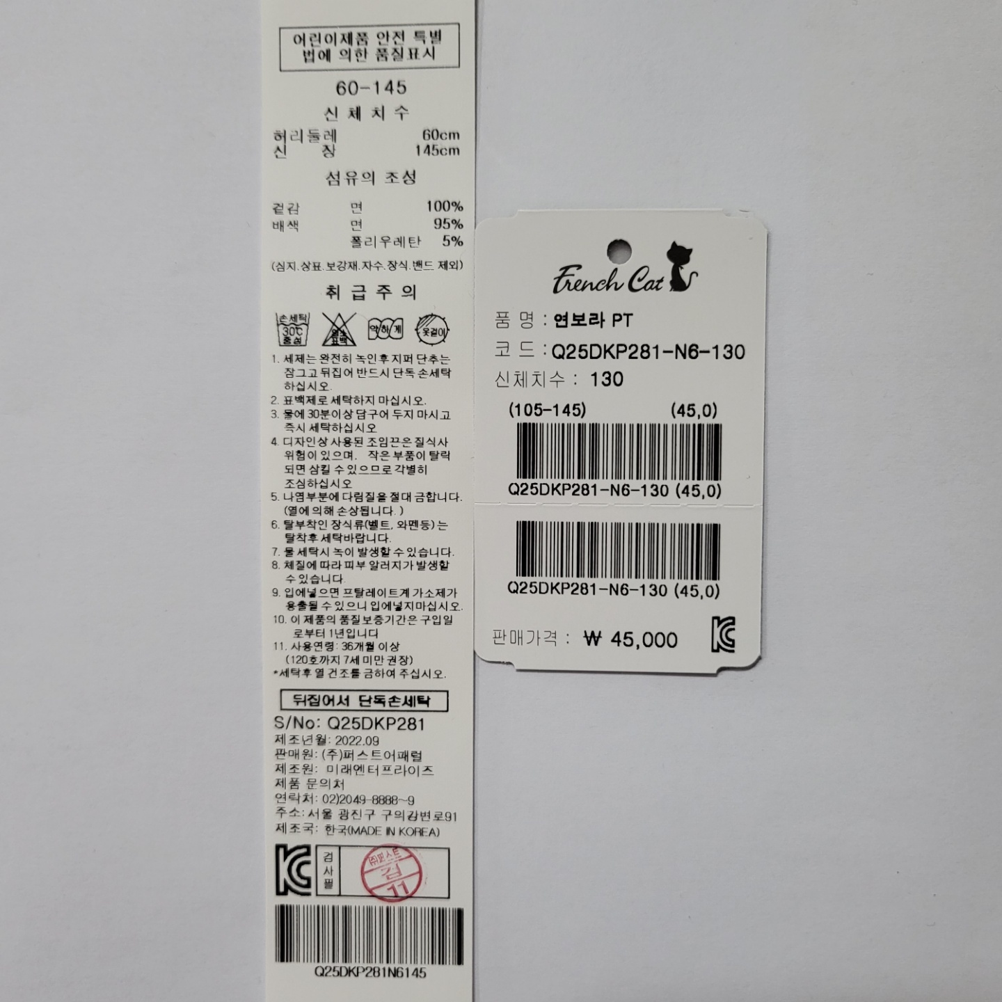 겉감:면100 배색:면95 폴리우레탄5 -