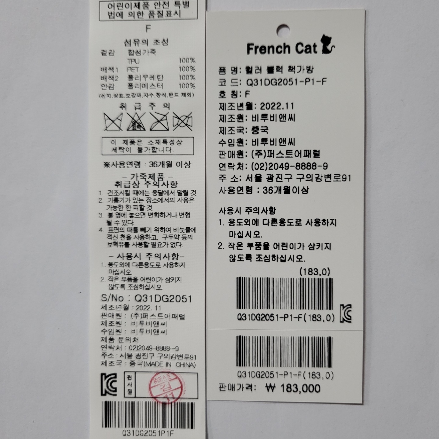 - 배송, 주문/결제, 취소/반품/교환/환불, 회원, 쿠폰/적립금, 이벤트 등의 자세한 문의사항은 고객센터 > 1:1 문의를 이용하여 주시기 바랍니다. 상품에 대한 궁금하신 내용을 문의해주세요.