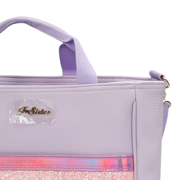 퍼플 칼라 소재와 아랫쪽에 책가방에 사용된 펄 그라데이션 소재로 포인트를 주고 로고 장식으로 깔끔함을 살린 보조가방입니다. 학원갈 때 보조 가방이나 학교에서 실내화 주머니로 다양하게 사용 가능합니다. 끈 탈부착으로 크로스로도 착용 가능하며 안쪽에 별도 주머니가 있어 실내화 넣을 때와 별도 사용할 때 구분하여 사용 가능합니다.