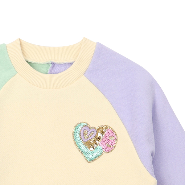 라그란스타일의 소배배색 맨투맨으로 톡톡튀는 민트 &연보라 조합이 유니크한느낌을 주며 가슴에 블링한 골드와펜이 포인트인 아이템입니다. (SET - T35KBP040)
