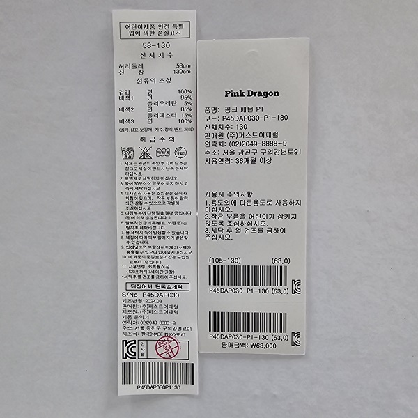 겉감 : 면 100 배색 1 면 95 폴리우레탄 5 배색 2 면 85 폴리에스터 15 배색 3 면 100 -