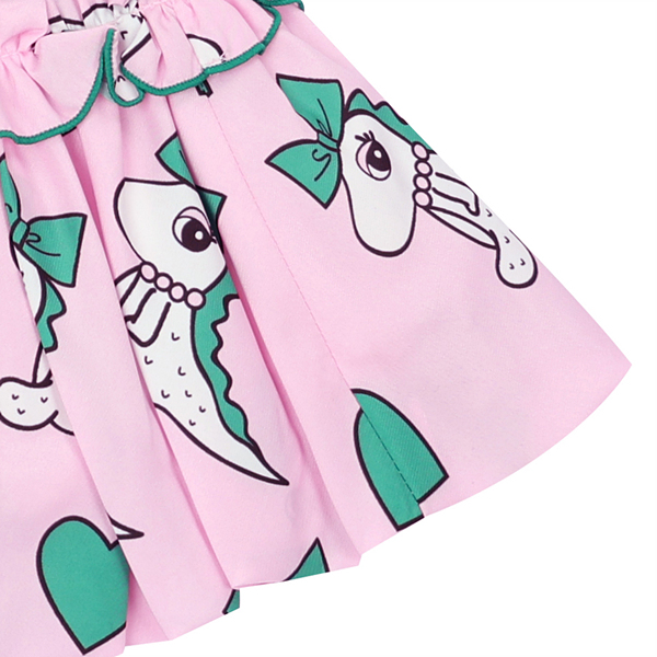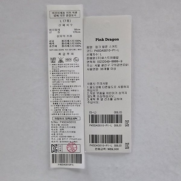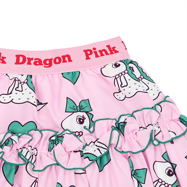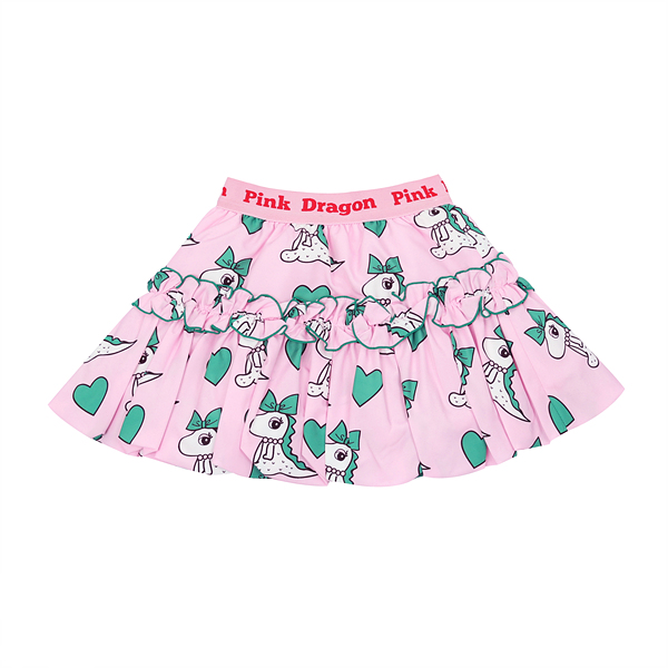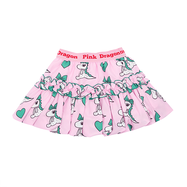 -소프트한 화섬소재에 귀여운 하트드래곤 전판원단과 안감은 퀼팅원단으로 보온성을 높인 핑크 벌룬 스커트.