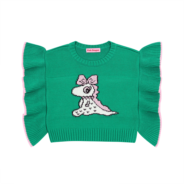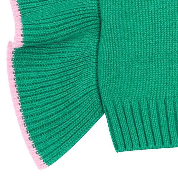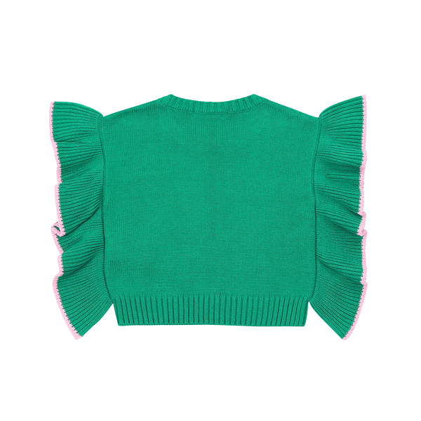 -소프트한 터치감의 그린 프릴 니트 조끼.