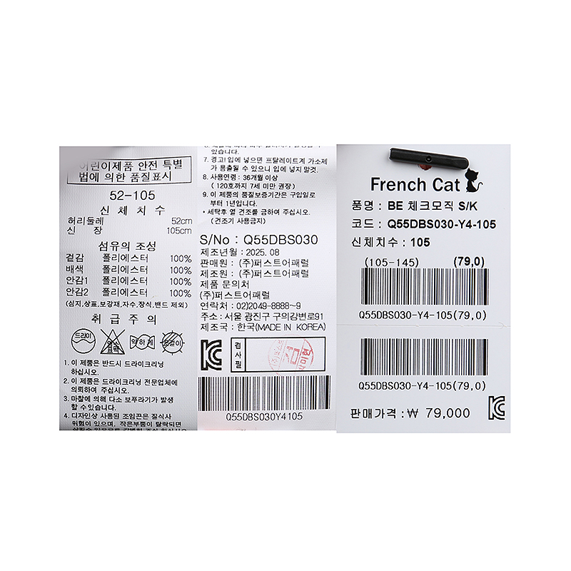 겉감 폴리에스터100배색 폴리에스터100안감1 폴리에스터100안감2 폴리에스터100 -
