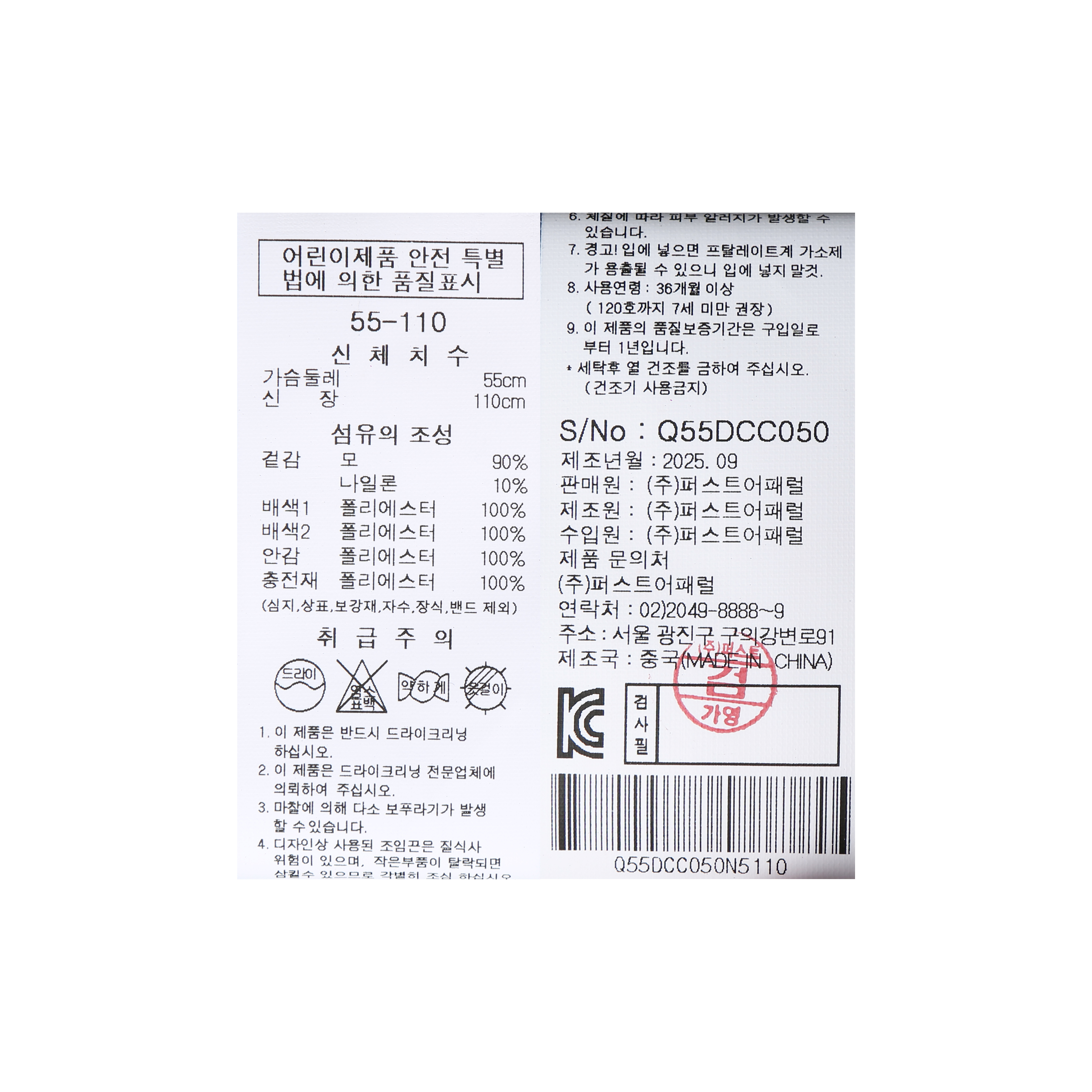 겉감 울90 나일론10배색1 폴리에스터100배색2 폴리에스터100안감 폴리에스터100충전재 폴리에스터100 -