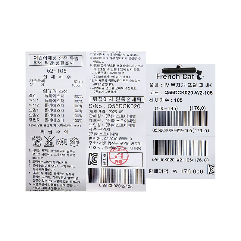 겉감 폴리에스터100배색1 폴리에스터100배색2 폴리에스터100안감1 폴리에스터100안감2 폴리에스터100충전재 폴리에스터100 -