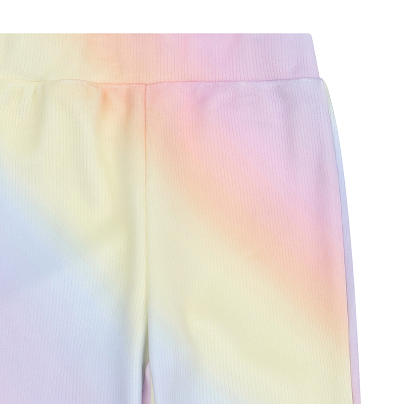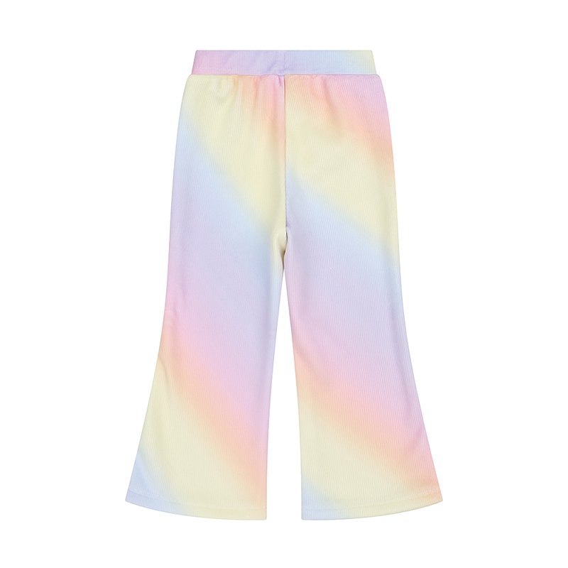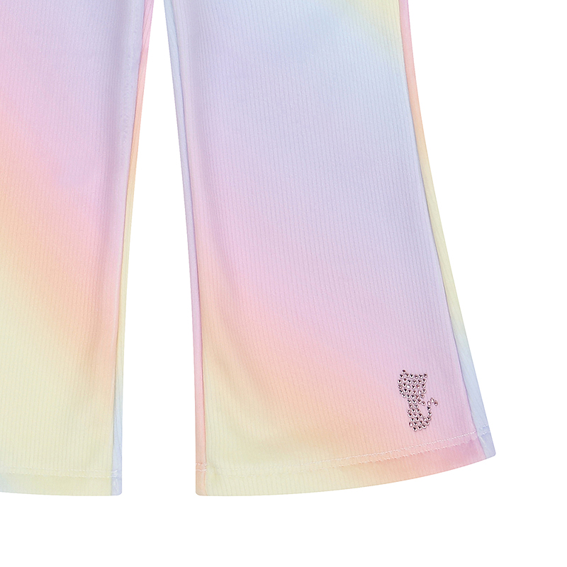 포근하고 보드러운 골지 기모 원단에 사선 무지개 그라데이션된 원단으로 만든 팬츠입니다. 부츠컷 라인이 예쁜 제품으로 같은 원단으로 제작된 멀티 골지 프릴 TS와 함께 셋업 연출을 해보세요.