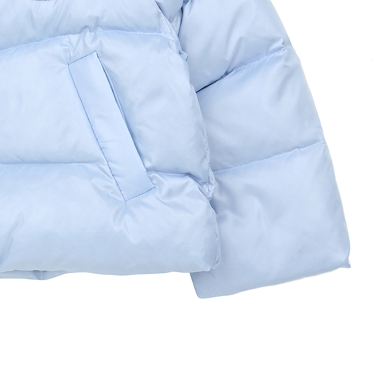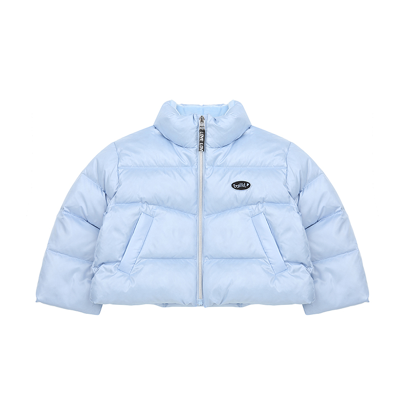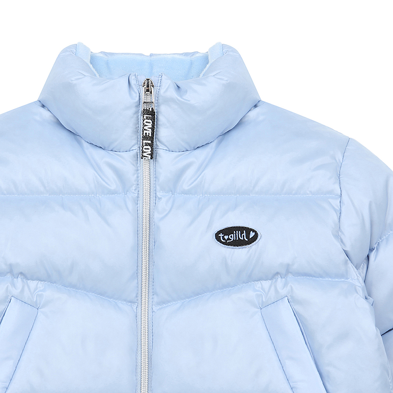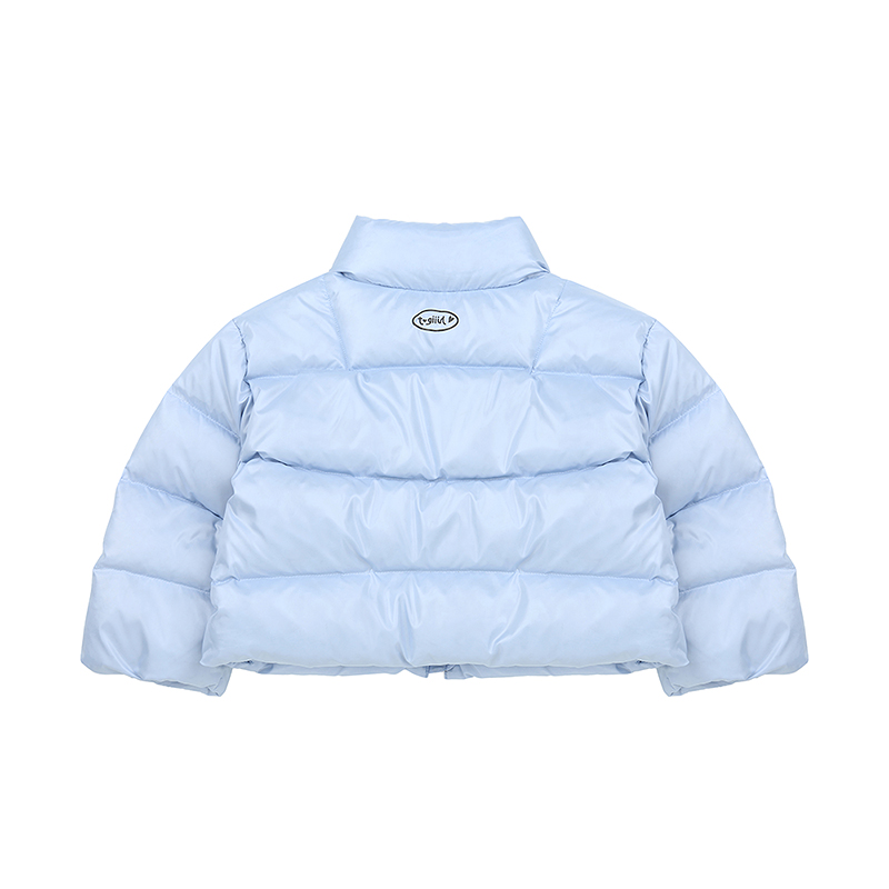 상큼한 컬러의 연블루 오리털점퍼로 숏기장으로 활동성에 용이하며 가슴에 와펜과 뒷목에 나염이 포인트인아이템입니다.
