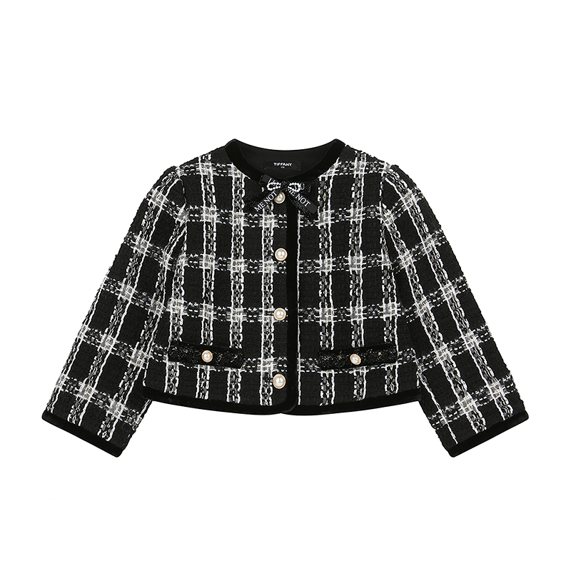 블랙트위드 자켓으로 벨벳배색으로 한층 포인트를 더해주는 디자인과 고급스러운 트위드장식과 탈부착브로찌로 포인트를준 아이템입니다.(SET-T55KAS010)
