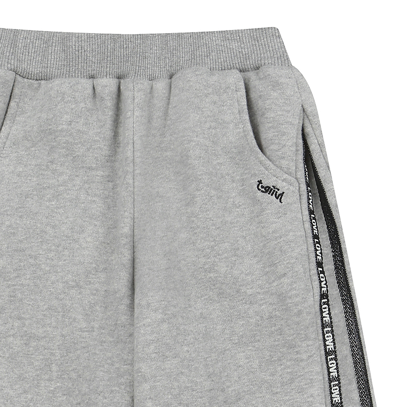 멜란지 와이드 트랙팬츠로 옆라인에 테이프배색으로 한층더 포인트를 준아이템 밑단 스트링 조절이 되어 활용도 높은 아이템입니다. (SET-T55KAT070)