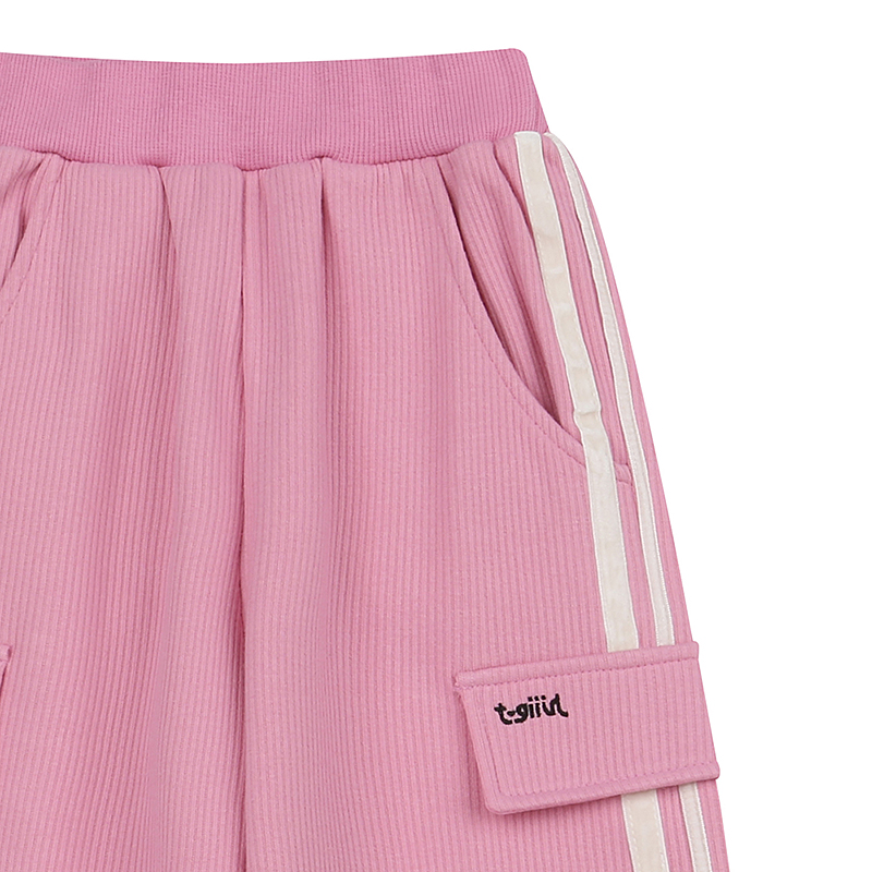 핑크골지소재의 트레이닝 팬츠로 옆선에 벨벳 테이프로 포인트를 준 아이템으로 SET 집업티도 같이 구성되어 있습니다.