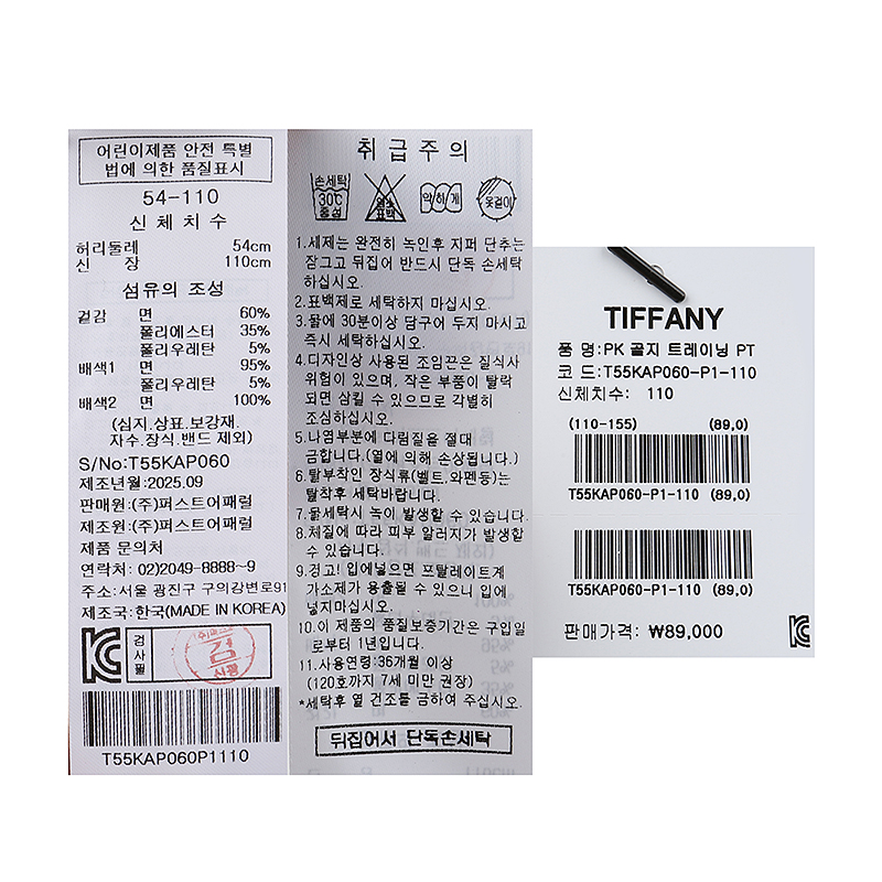 겉감 : 면 60 폴리에스터 35 폴리우레탄 5 배색 1 면 95 폴리우레탄 5 배색 2 면 100 -