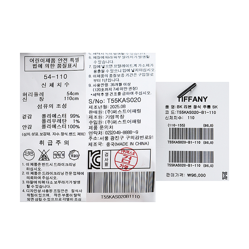 겉감 : 폴리에스터 99 폴리우레탄 1 안감 폴리에스터 100 -