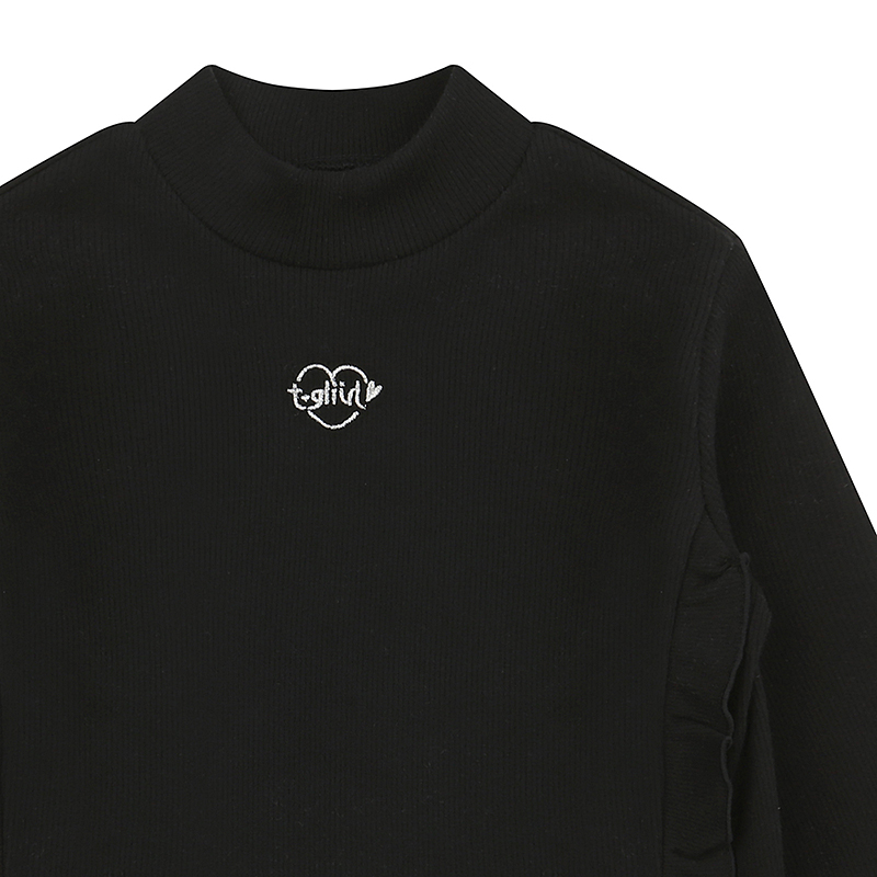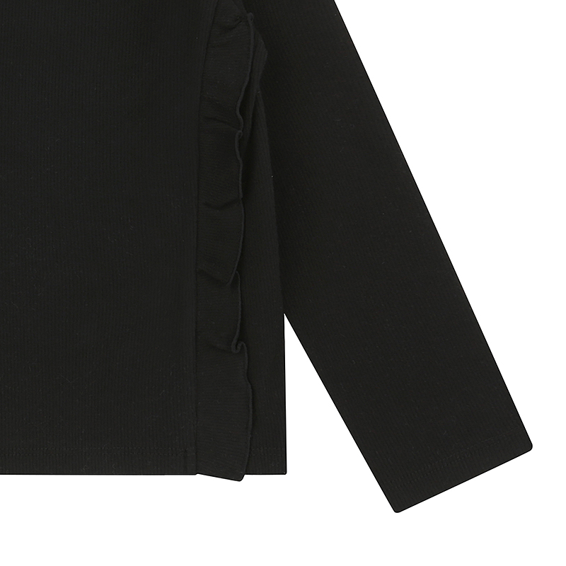 블랙골지 반목티로 몸판에 프릴디테일이 귀여운 느낌을 더해주며 이너티로 어디에나 코디가능한 아이템입니다.
