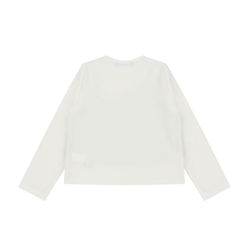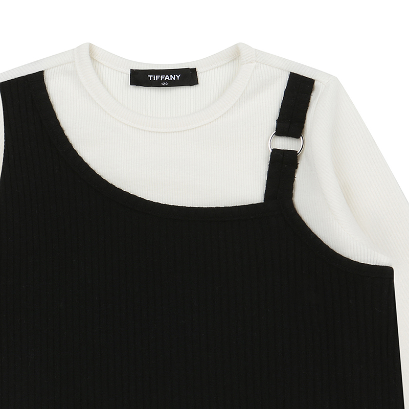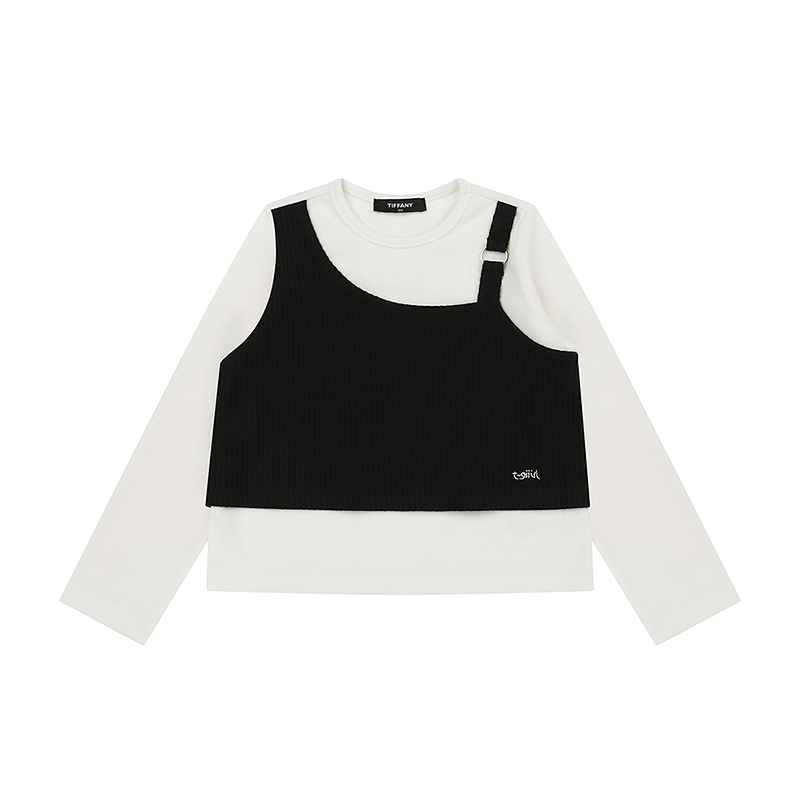 뷔스티에 스타일의 아이보리티셔츠 비대칭적인 절개라인이 포인트인 아이템으로 루즈한 트레이닝 팬츠와 같이 코디하면 좋은 아이템입니다.