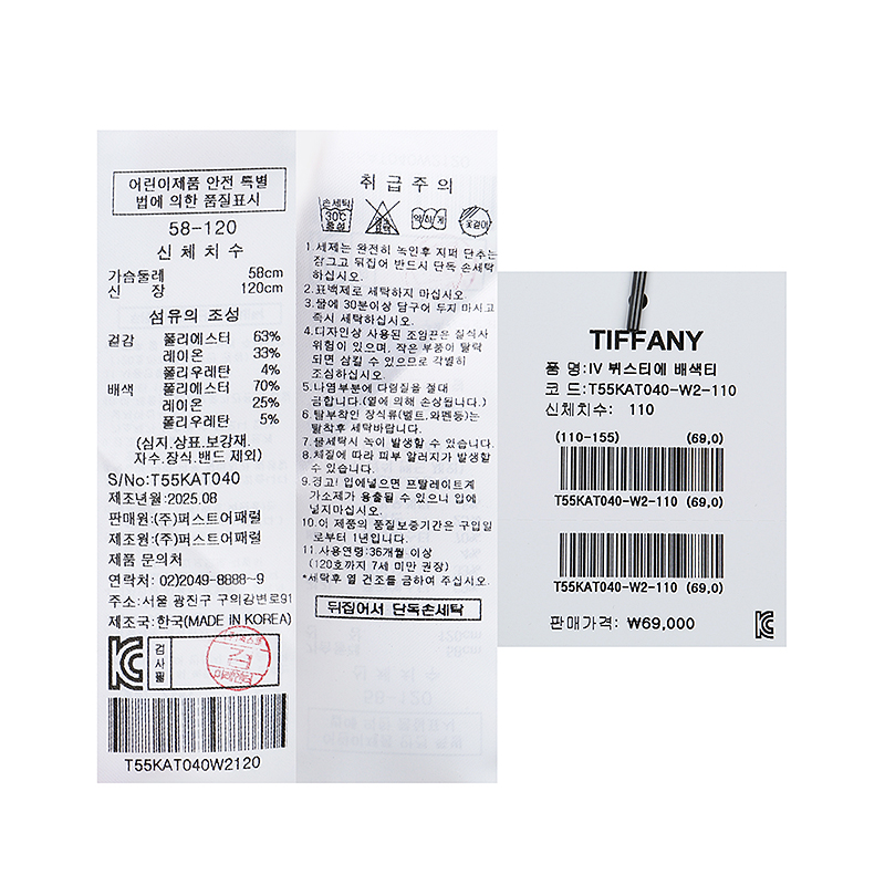 겉감 : 폴리에스터 63 레이온 33 폴리우레탄 4 배색 폴리에스터 70 레이온 25 폴리우레탄 5 -