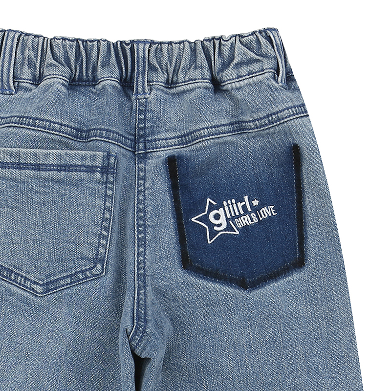 블루데님 워싱으리 일자핏 데님으로 슬림해 보이는 핏인 아이템이며 뒷판 자수 디테일이 귀여운