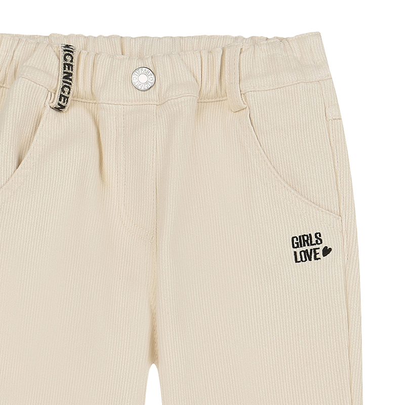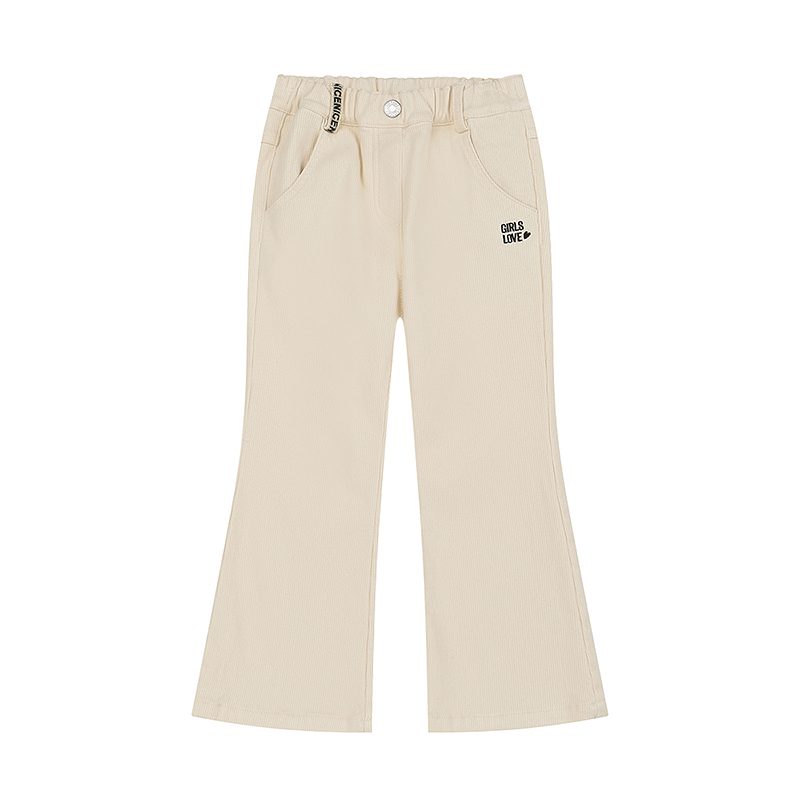 골지느낌의 아이보리 기모 부츠컷 핏의 우븐바지