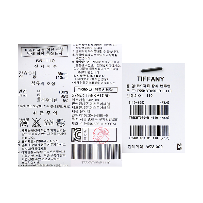 겉감 : 면 100 배색 면 95 폴리우레탄 5 -