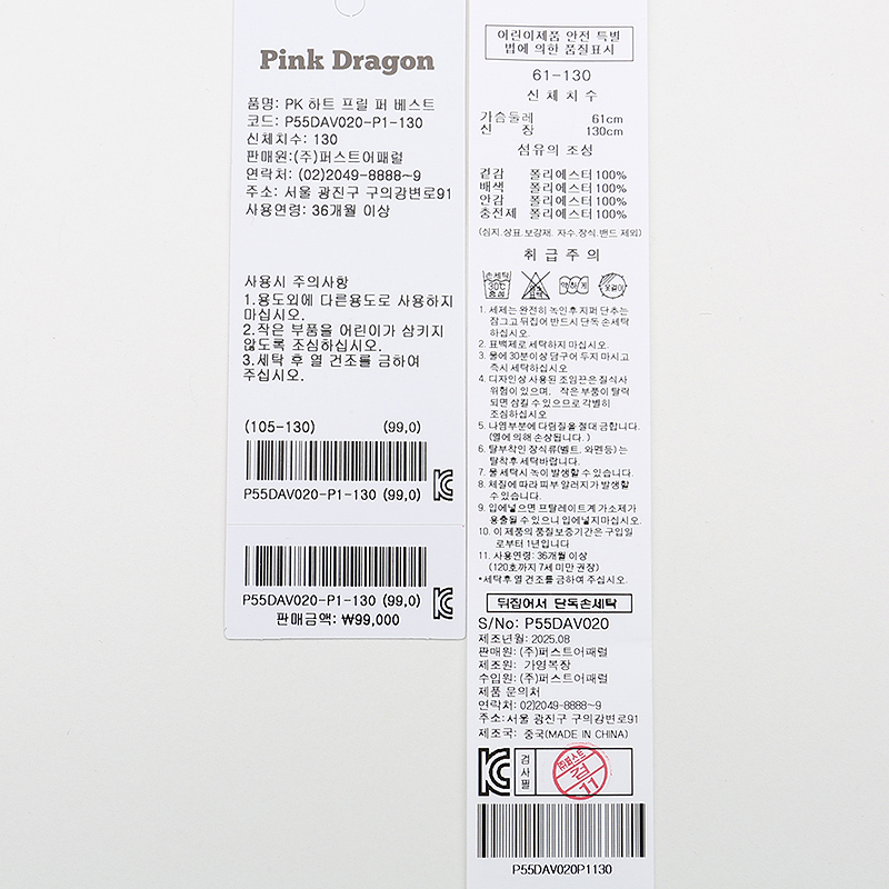 겉감 : 폴리에스터 100 배색 폴리에스터 100 안감 폴리에스터 100 충전제 폴리에스터 100 -