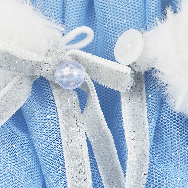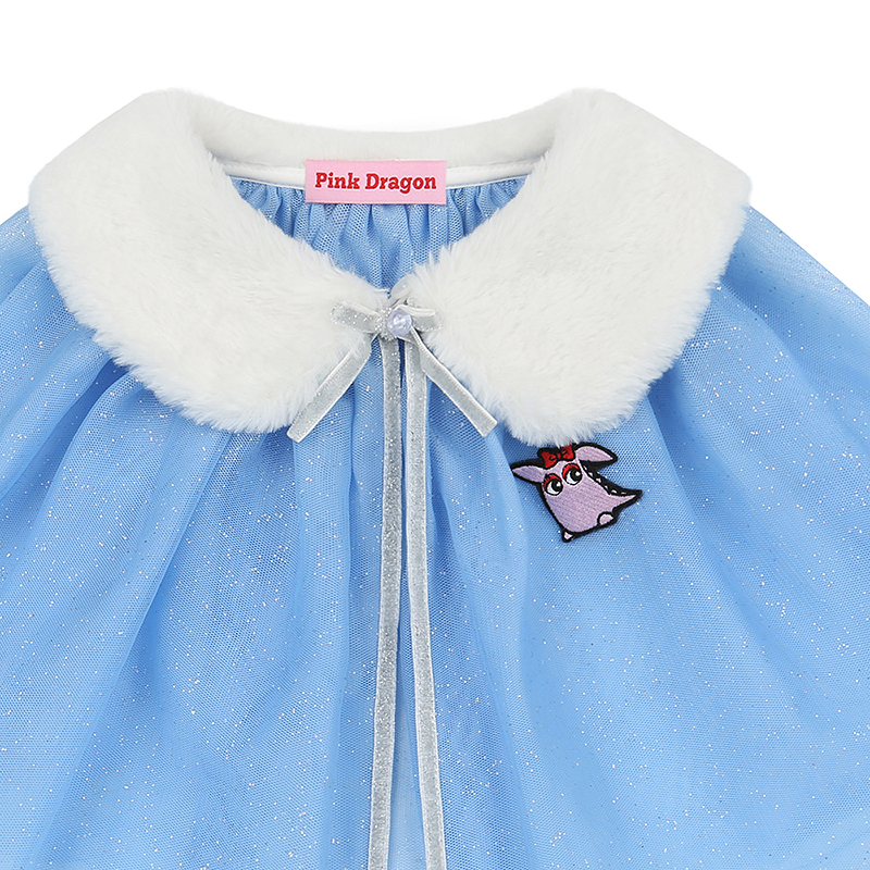 -Pink Dragon in Fairytale Land 테마와 잘 어울리는 펄 블루 샤 원단으로 만들어진 탈착 케이프.
