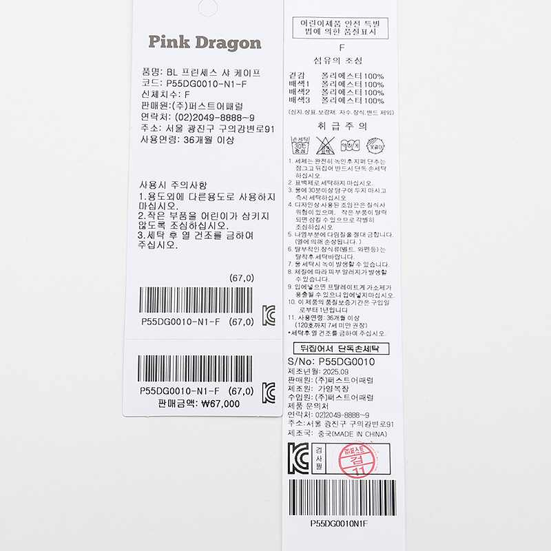 - 배송, 주문/결제, 취소/반품/교환/환불, 회원, 쿠폰/적립금, 이벤트 등의 자세한 문의사항은 고객센터 > 1:1 문의를 이용하여 주시기 바랍니다. 상품에 대한 궁금하신 내용을 문의해주세요.