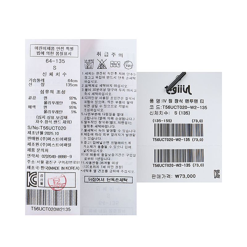 겉감 : 면 92 폴리우레탄 8 배색 면 95 폴리우레탄 5 -
