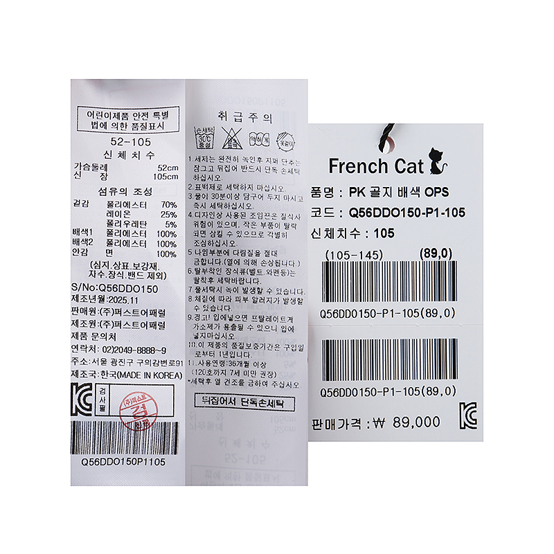 겉감 폴리에스터70 레이온 25 폴리우레탄5배색1 폴리에스터100배색2 폴리에스터100안감 면100 -