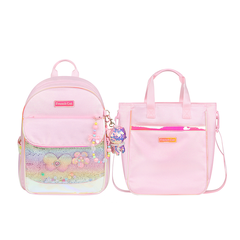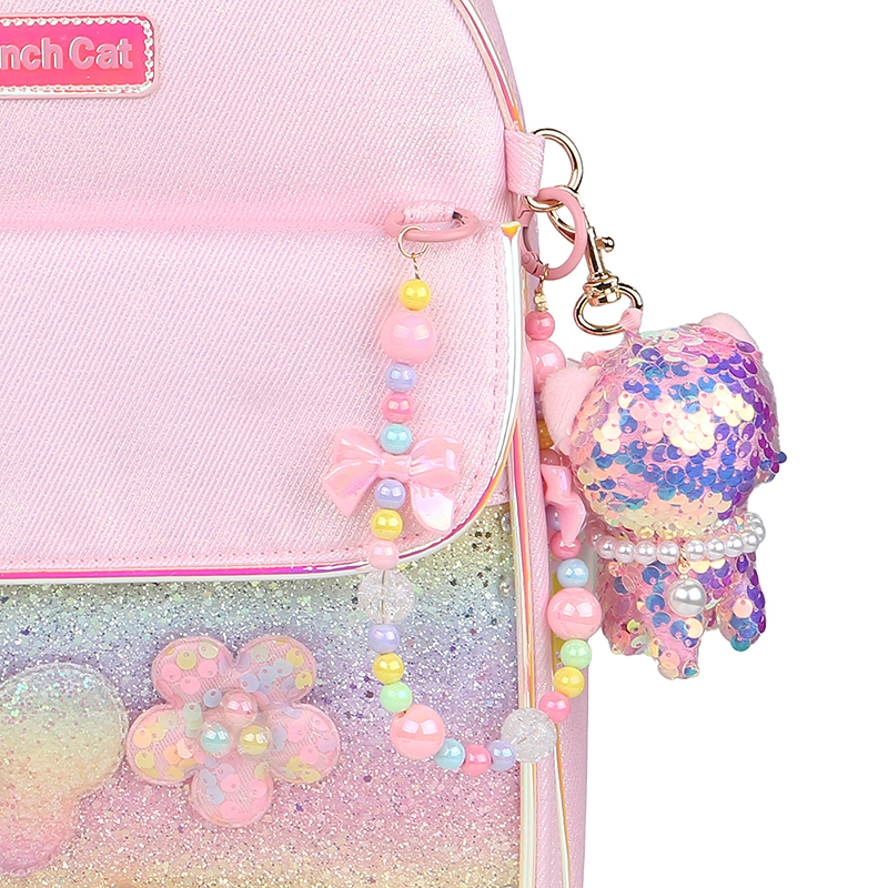 블링블링한 핑크 글리터와 그라데이션 펄 포인트로 시선을 사로잡고 앞 포켓으로 수납까지 잡은 실용적인 책가방입니다.