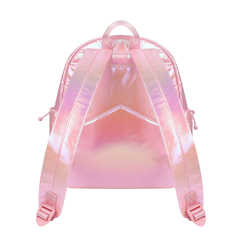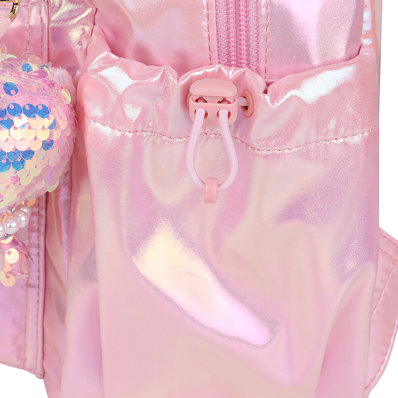 광택감 있는 연핑크 소재에 스타일링 포인트를 주기 좋은 책가방입니다.