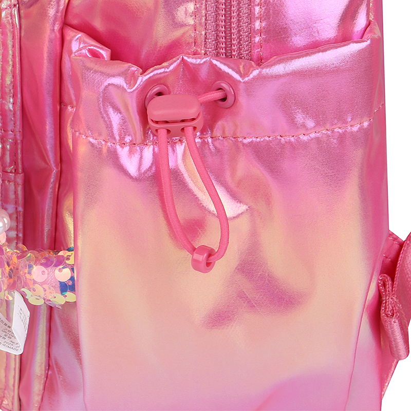 광택감 있는 진핑크 소재에 스타일링 포인트를 주기 좋은 책가방입니다.
