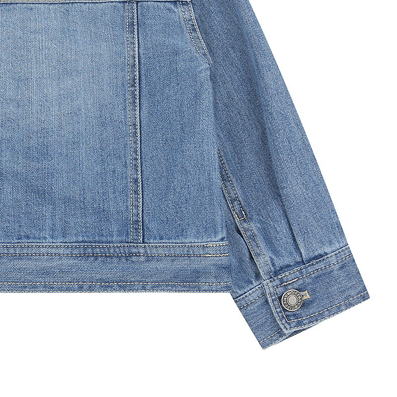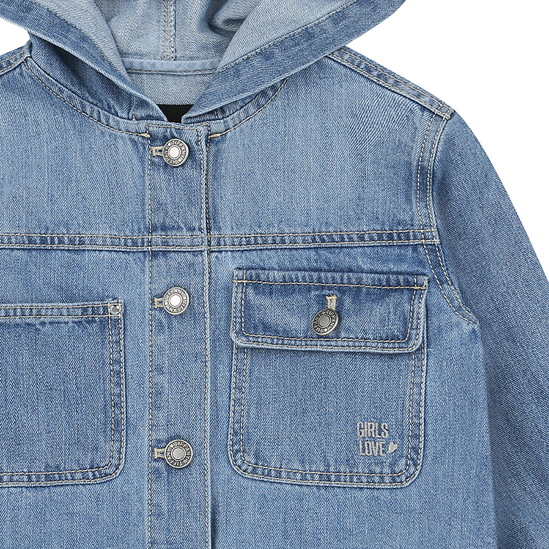 블루톤의 데님자켓으로 후드디테일로 활용성이 좋으며 앞판에 비대칭포켓이 포인트인 아이템입니다.