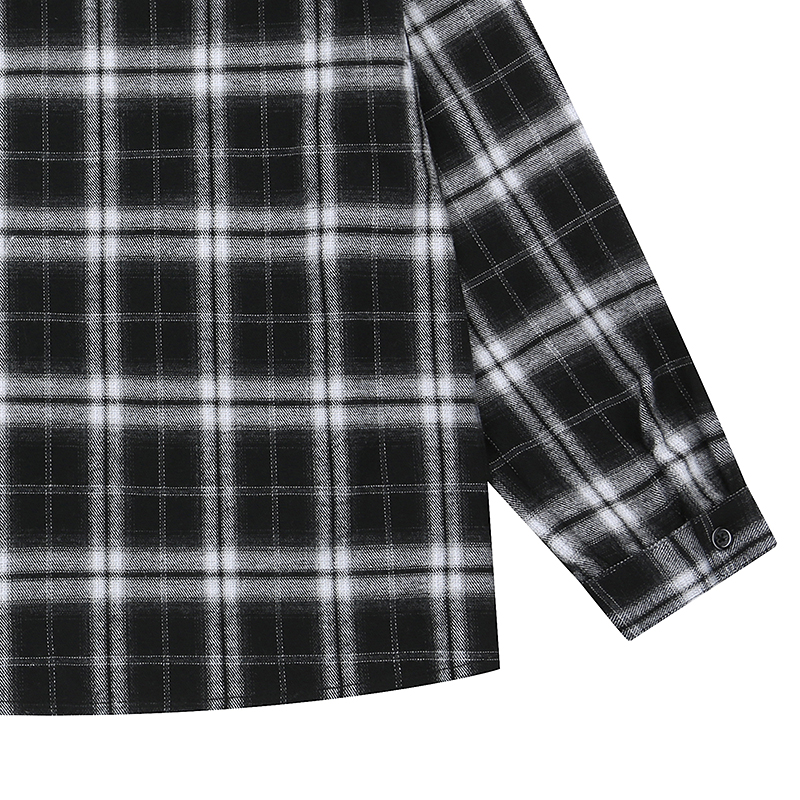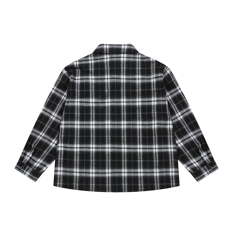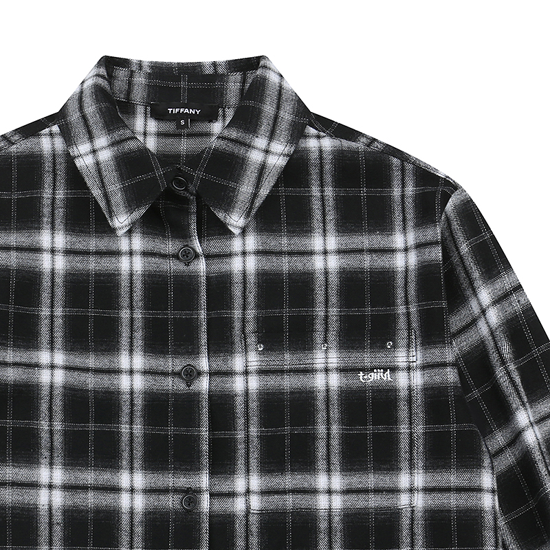 블랙 체크지로 겉 표면에 얇게 기모처리가 되어 있어 봄 시작에 착용하기 좋은 셔츠 스타일입니다. 롱한 기장감에 루즈핏으로 기본셔츠로도 아웃터 대용으로도 착용하기 좋은 아이템입니다. 앞포켓 위에 핫픽스 장식으로 포인트를 주었습니다.