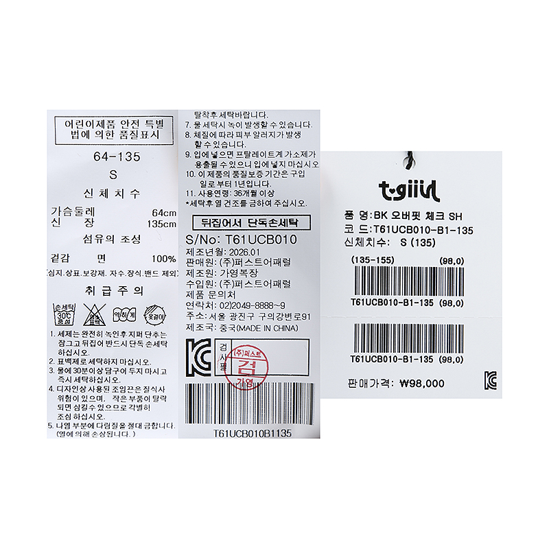 BK 오버핏 체크 SH