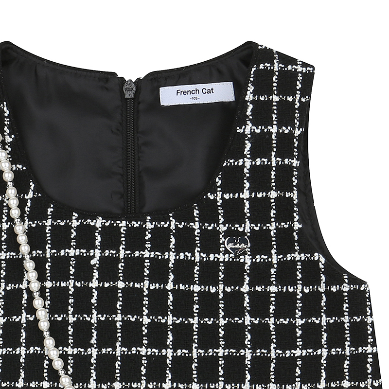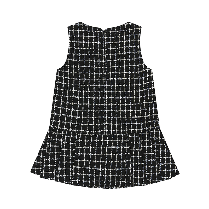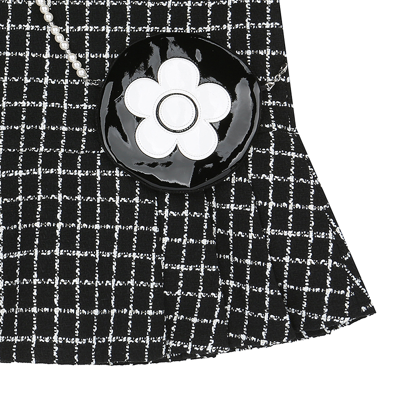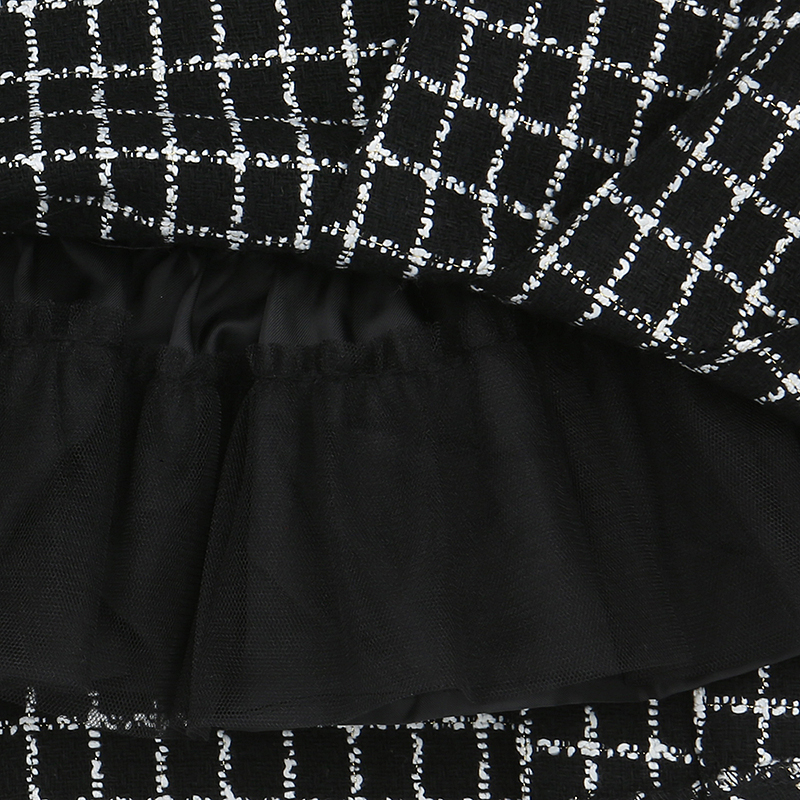 목라인이 파인 블랙 체크 트위드 점퍼스커트 입니다.