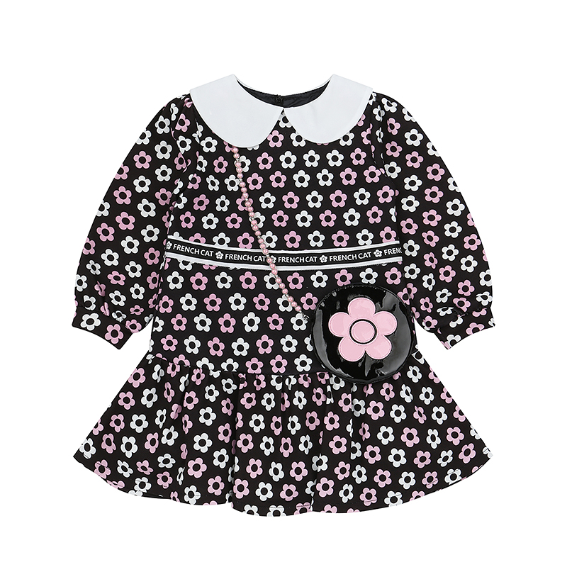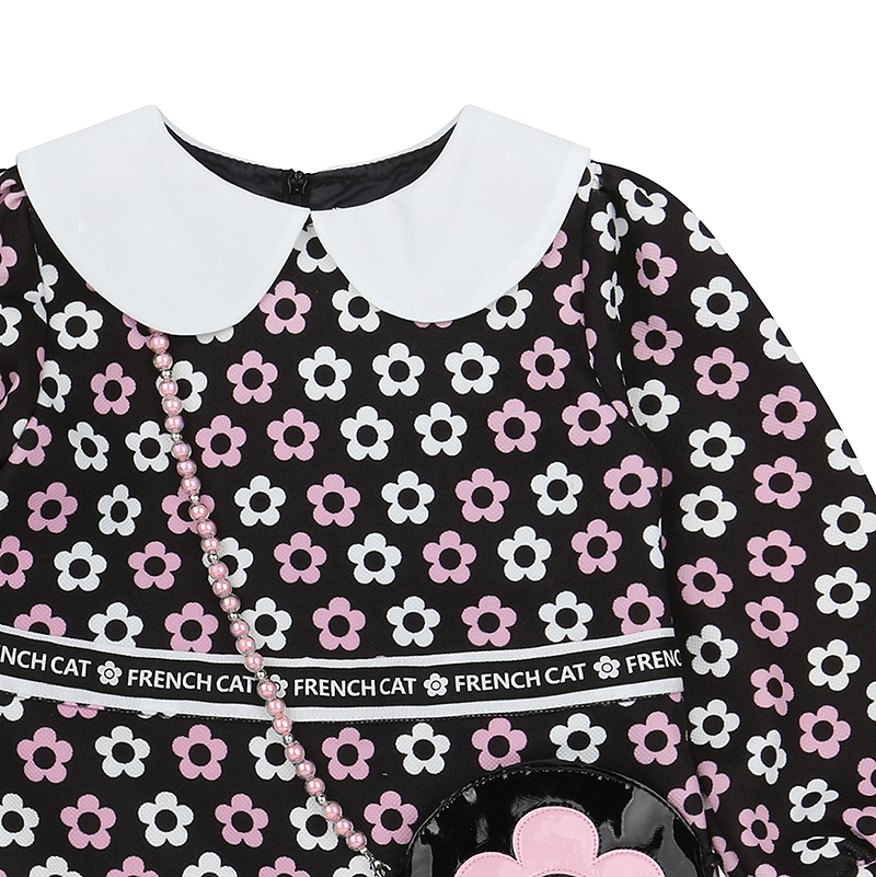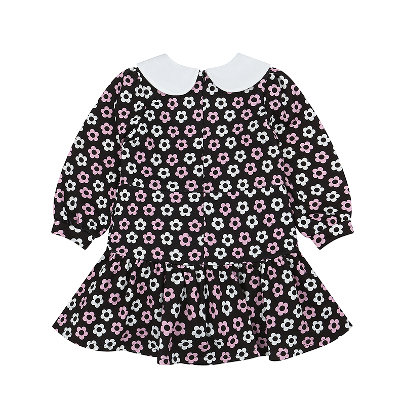 화이트컬러의 배색 카라가 달려있어 깔끔한 느낌을 주는 잔잔한 꽃무늬가 들어간 러블리한 원피스 입니다.