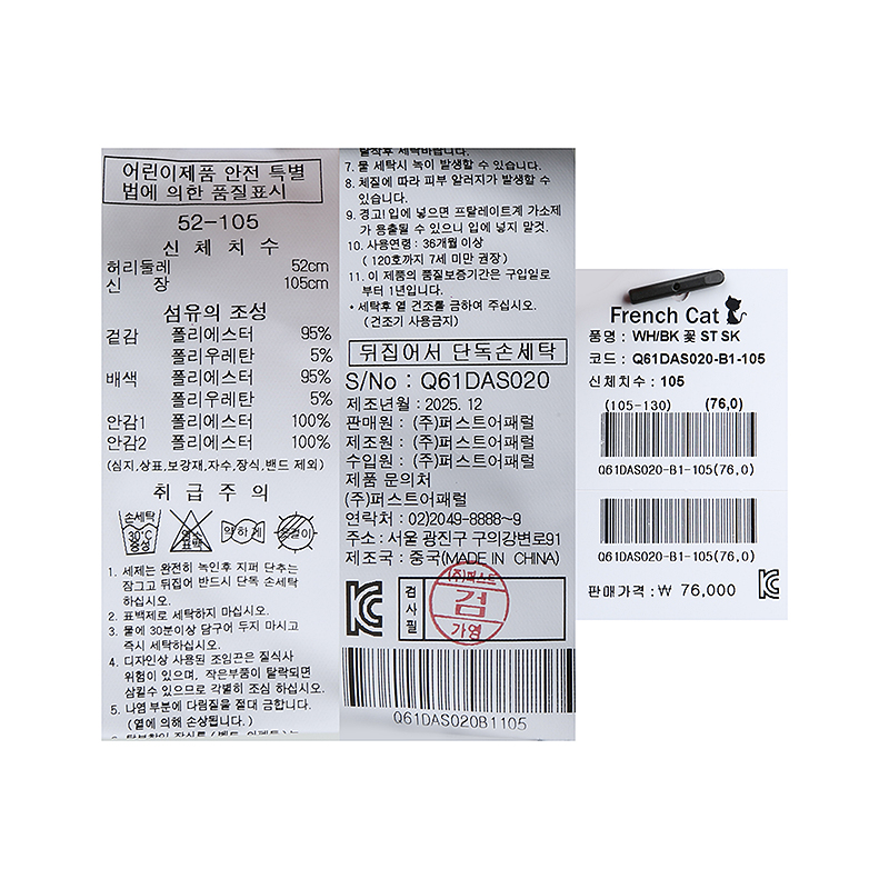 겉감 폴리에스터95 폴리우레탄5배색 폴리에스터95 폴리우레탄5안감1 폴리에스터100안감2 폴리에스터100 -