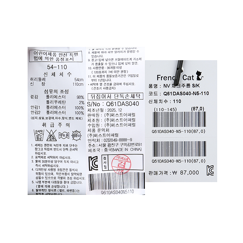 겉감 폴리에스터98 폴리우레탄2안감1 폴리에스터100안감2 폴리에스터100 -
