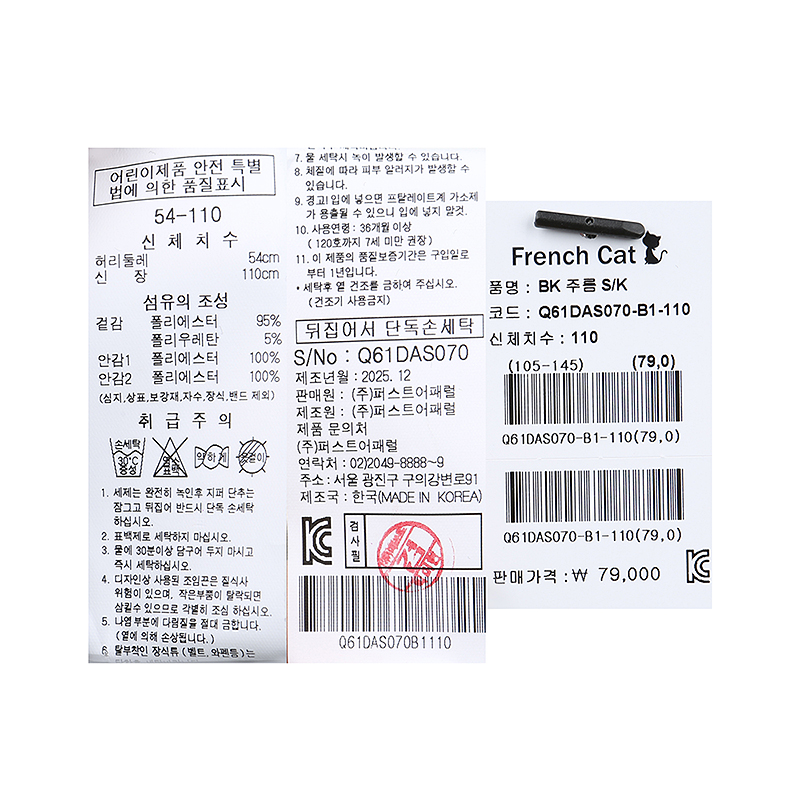 겉감 폴리에스터95 폴리우레탄5안감1 폴리에스터100안감2 폴리에스터100 -