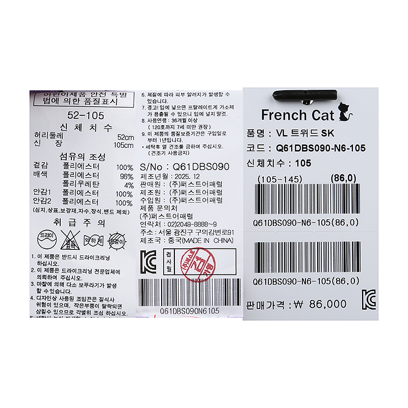 겉감 폴리에스터100배색 폴리에스터96 폴리우레탄4안감1 폴리에스터100안감2 폴리에스터100 -