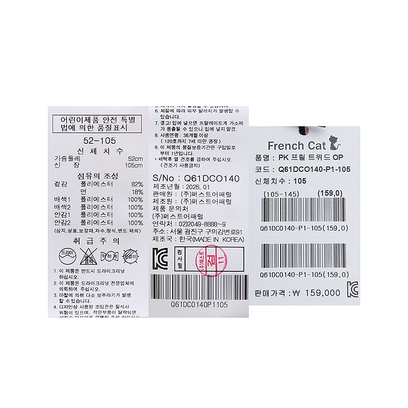 겉감 폴리에스터82 면18배색1 폴리에스터100배색2 폴리에스터100안감1 폴리에스터100안감2 폴리에스터100 -