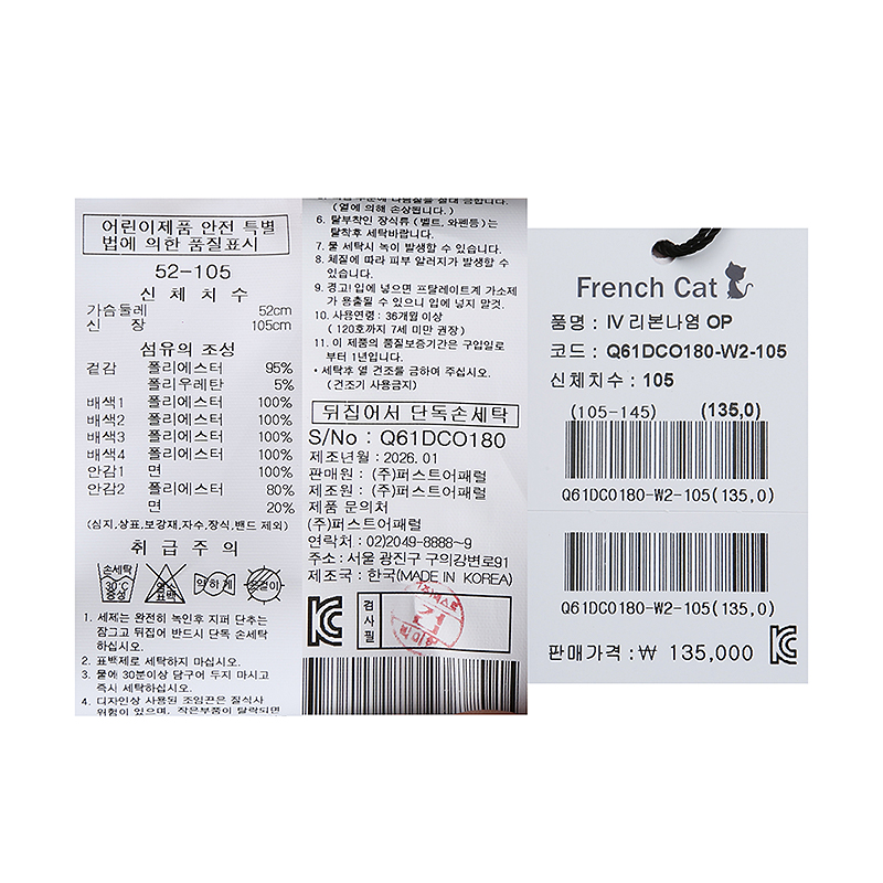 겉감 폴리에스터95 폴리우레탄5배색1 폴리에스터100배색2 폴리에스터100배색3 폴리에스터100배색4 폴리에스터100안감1 면100안감2 폴리에스터80 면20 -