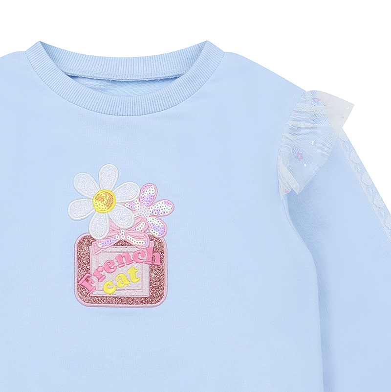 레이스와 샤 소재로 포인트를 준 로맨틱 맨투맨
